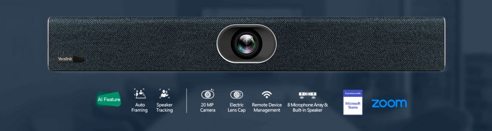 O UVC40 possui uma câmera alimentada por IA de alta qualidade, conjuntos de microfones e alto-falantes, todos integrados em um único dispositivo para criar um ponto de reunião de áudio e vídeo elegantemente simplificado, combinando um design altamente compacto com um rico desempenho de câmera.