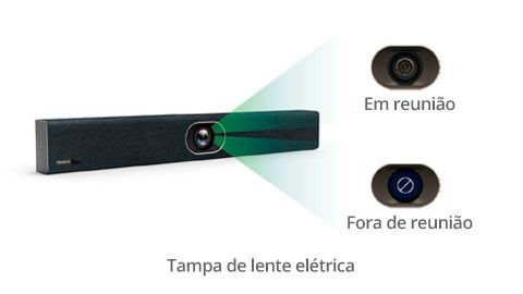 A tampa da lente elétrica foi projetada para proteger a privacidade. Pode ser ligado ou desligado automaticamente de acordo com o status da reunião. Quando uma reunião termina, o obturador fecha automaticamente.