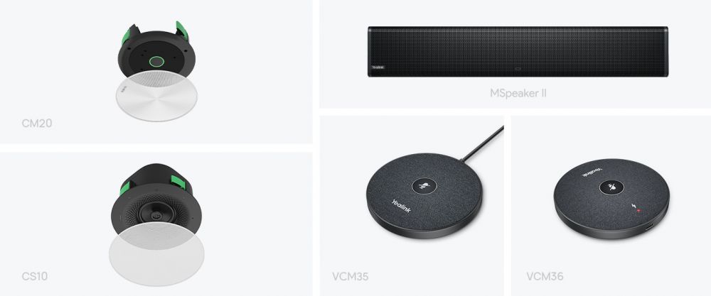 Além da câmera avançada para videoconferência, o sistema Yealink MVC860 oferece opções flexíveis de áudio. Escolha entre uma variedade de dispositivos de captação de voz, incluindo o microfone Yealink VCM35, o microfone de teto CM20 e o microfone sem fio VCM36-W, combinados com o alto-falante de teto CS10, para atender às suas necessidades específicas de áudio.